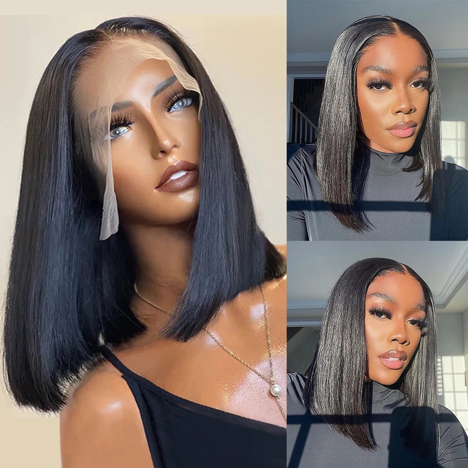 4x4 Lace Wig Straight Human Hair Short Bob Wig Glueless Wig Human Hair Natural Color