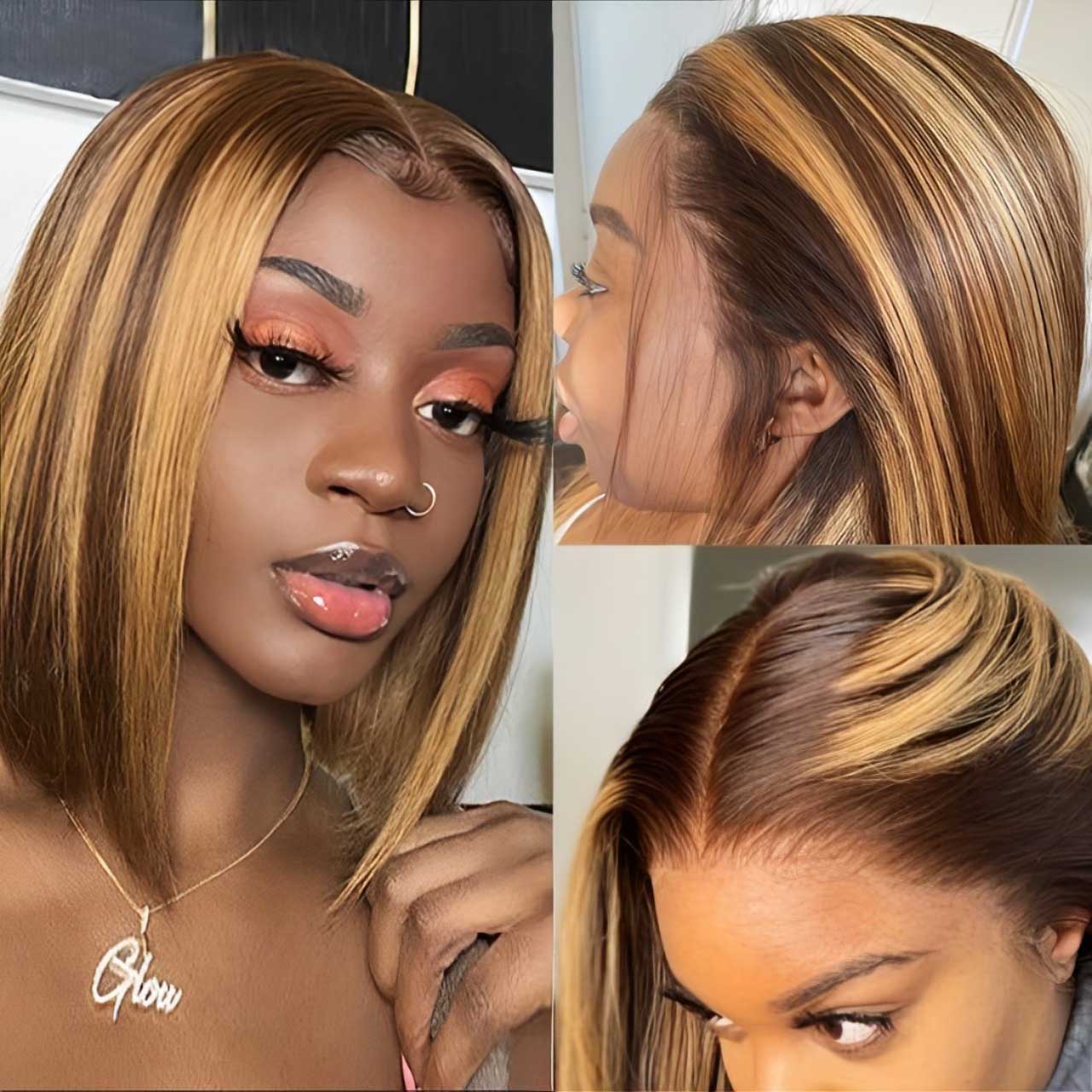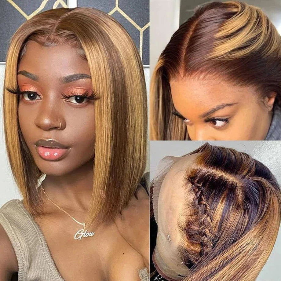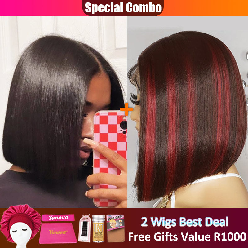 Hot combo | 13X4 Full Frontal Lace Natural Color Bob Wig+#4/red Color BOB Wig