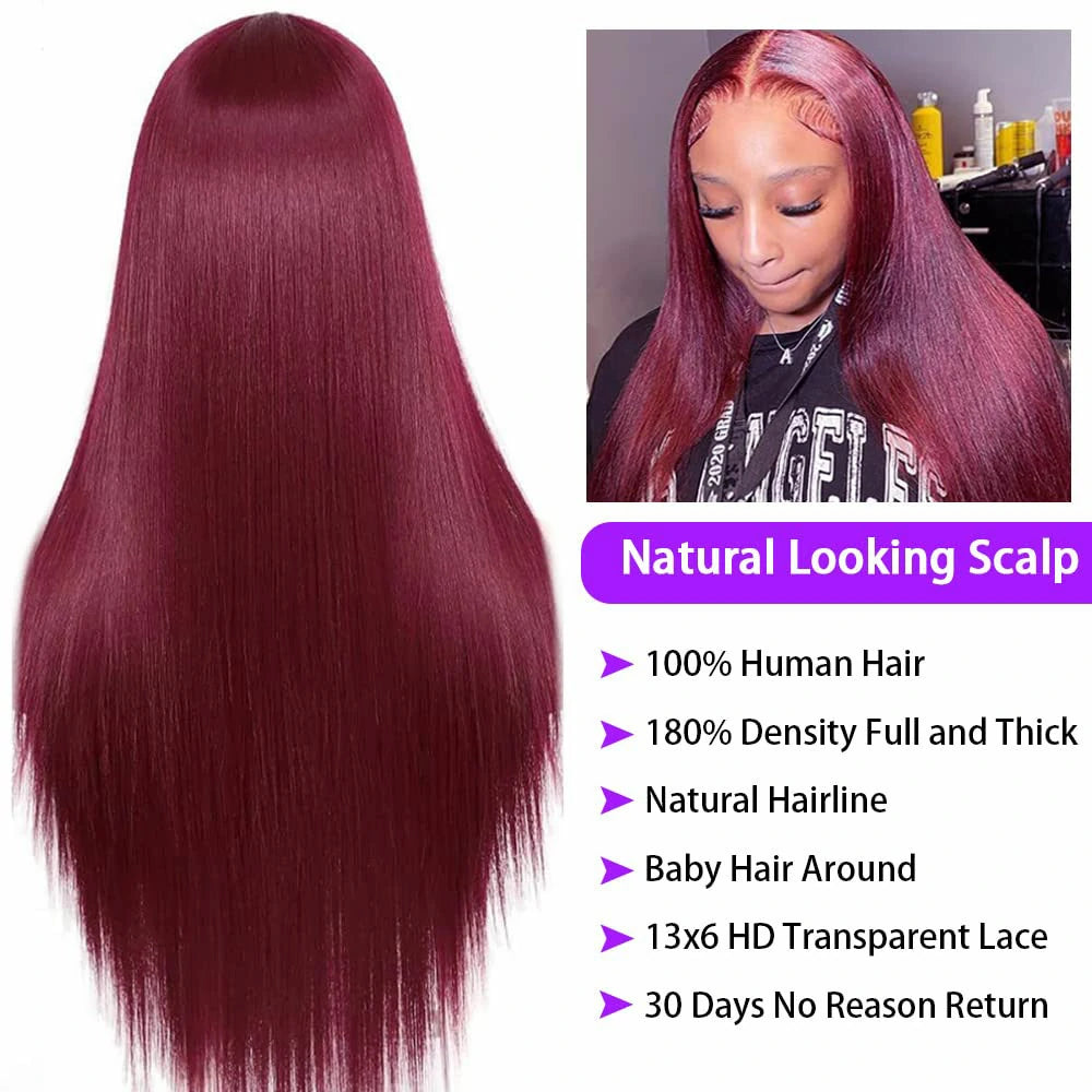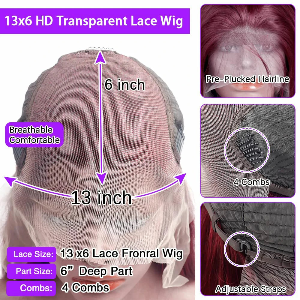 South Africa Short Cut Lace Front Wigs Human Hair 99J Burgundy Straight Bob Wigs Human Hair