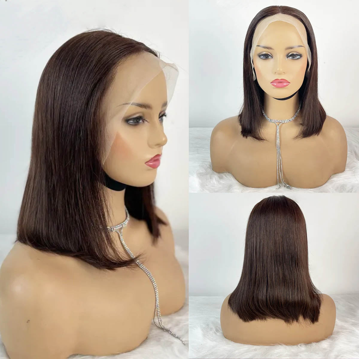 South Africa Straight Short Bob Wig Human Hair Color #2 13x4 Lace Frontal wigs