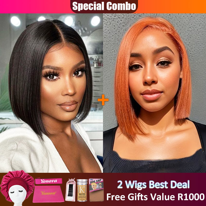 Hot combo | 13X4 Full Frontal Lace Natural Color Bob Wig+Orange #350 Color BOB Wig