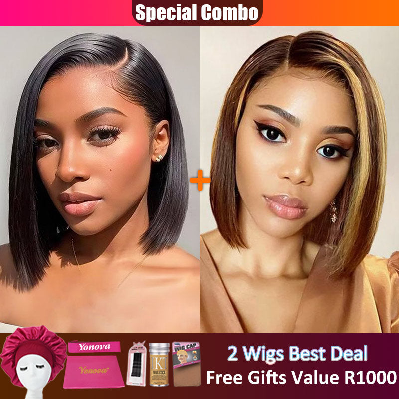 Hot combo | 13X4 Full Frontal Lace Natural Color Bob Wig+4X4 Lace 4/27 Piano Color BOB Wig