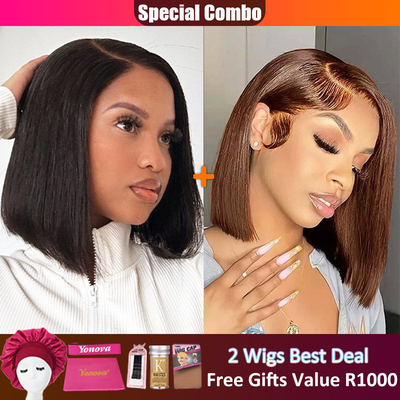 Hot combo | 13X4 Full Frontal Lace Natural Color Bob Wig+ Brown #4 Color BOB Wig