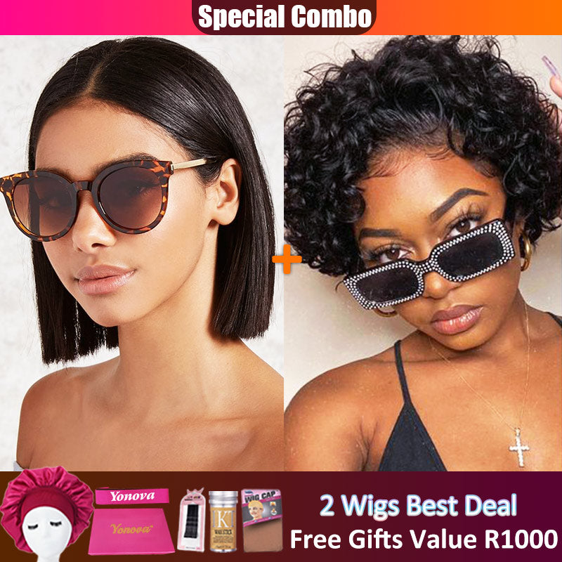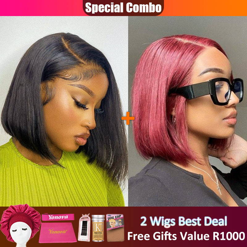 Hot combo | 13X4 Full Frontal Lace Natural Color Bob Wig+Burgundy #99J Color BOB Wig